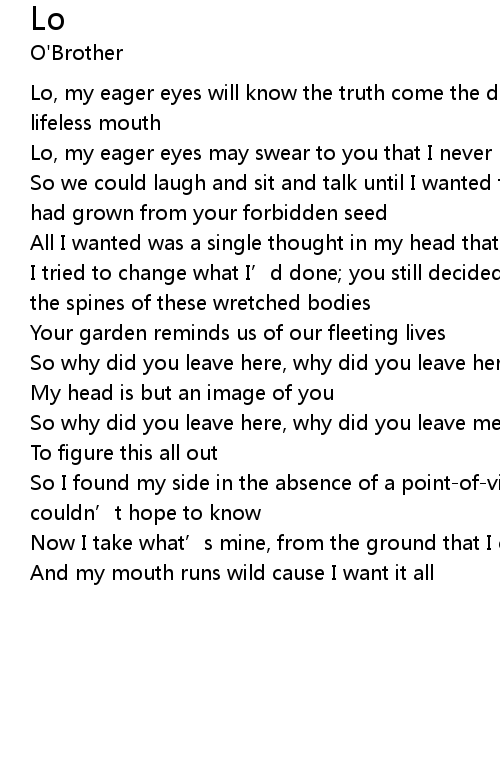 | Lo, my eager eyes will know the truth come the day when it’s pouring from my lifeless mouth | |
