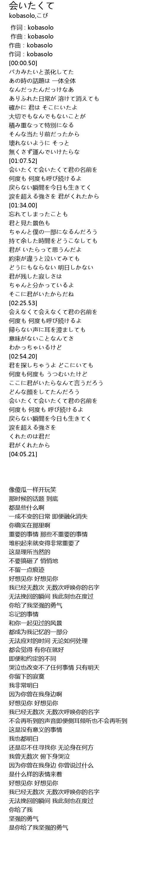 | [00:00.000] | 作词 : kobasolo |