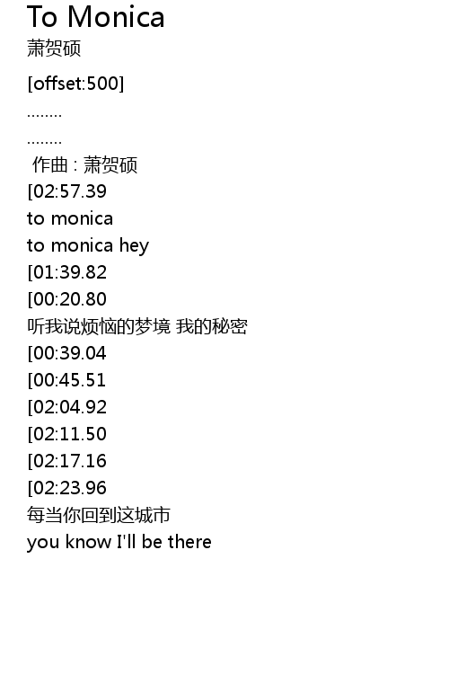 | [00:05.78] | to monica hey |