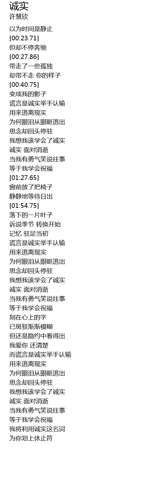 | [03:37.26] | wǒ xiǎng wǒ gāi xué huì le chéng shí |