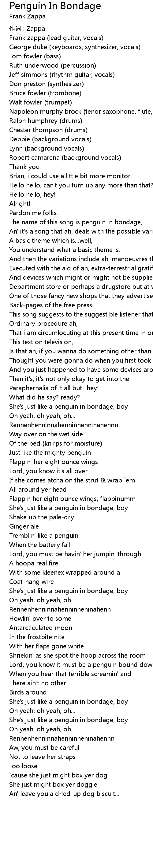 | The name of this song is penguin in bondage, | |