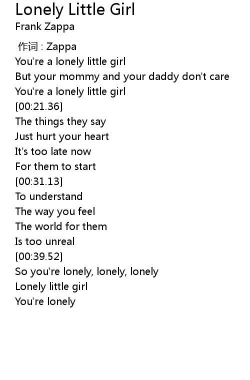 | [00:17.60] | You're a lonely little girl |