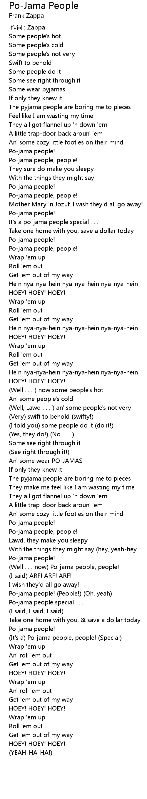 | [00:56.46] | The pyjama people are boring me to pieces |