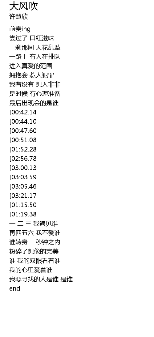 | [02:54.26][01:52.28][00:55.46] | 大风吹 |