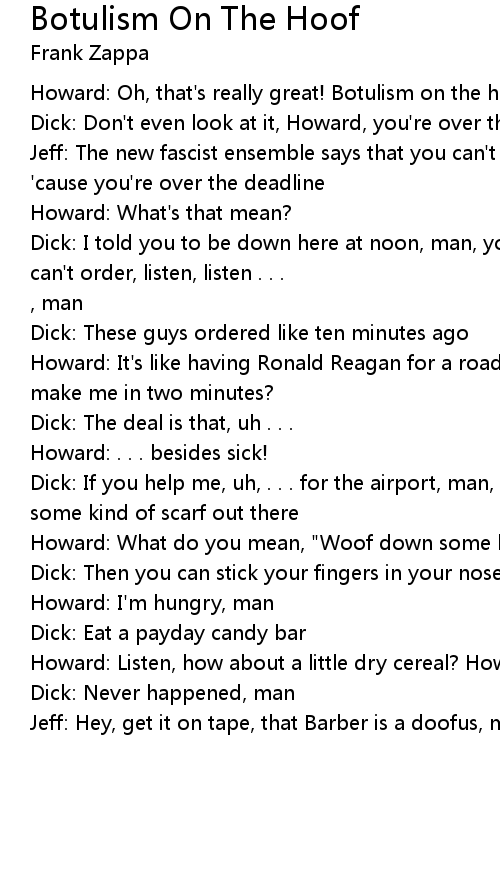 Howard: Oh, that's really great! Botulism on the hoof! |