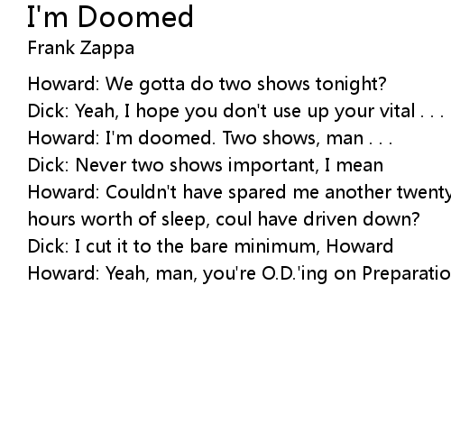 | Dick: Yeah, I hope you don't use up your vital . . . statistics | |