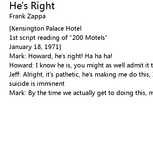 | 1st script reading of "200 Motels" | |