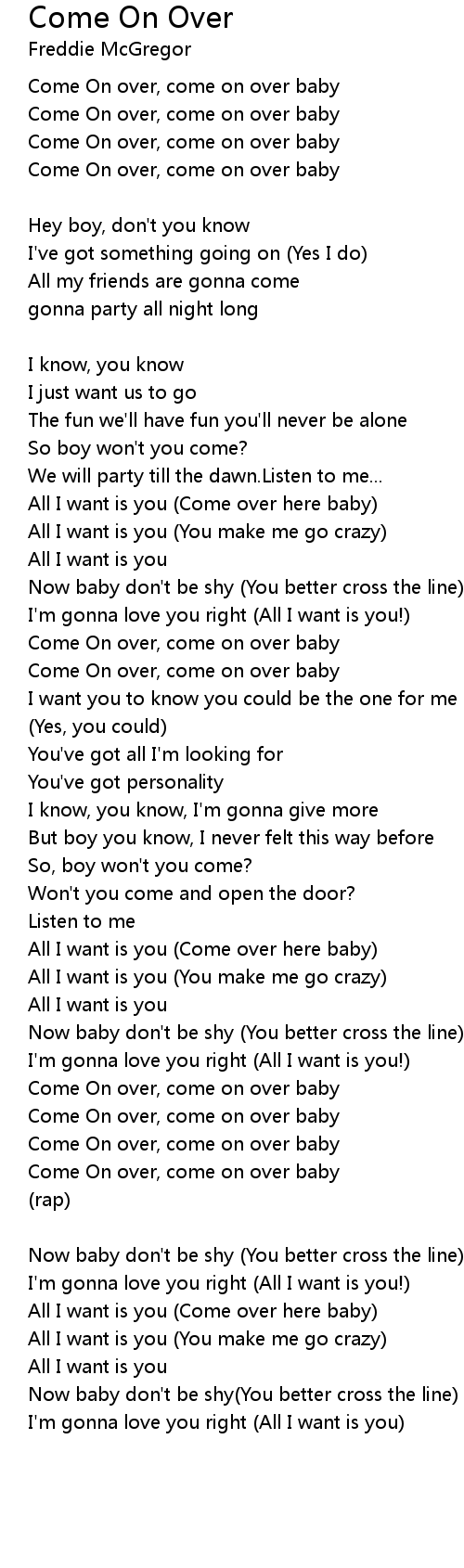 Come On over, come on over baby |