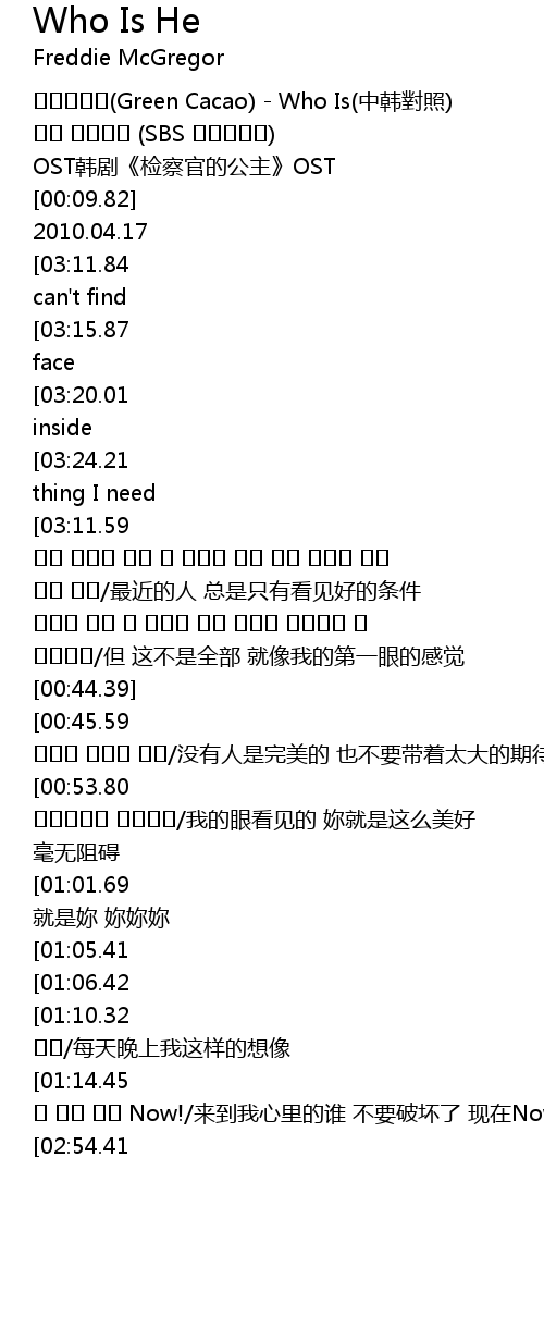 | [00:01.47] | 그린카카오(Green Cacao) - Who Is(中韩對照) |