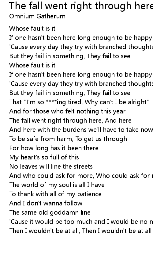 That "I'm so ****ing tired, Why can't I be alright" |