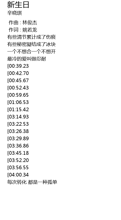 | [04:22.97][03:22.53][01:32.18] | 挑个新的生日吹灭旧的茫然 |