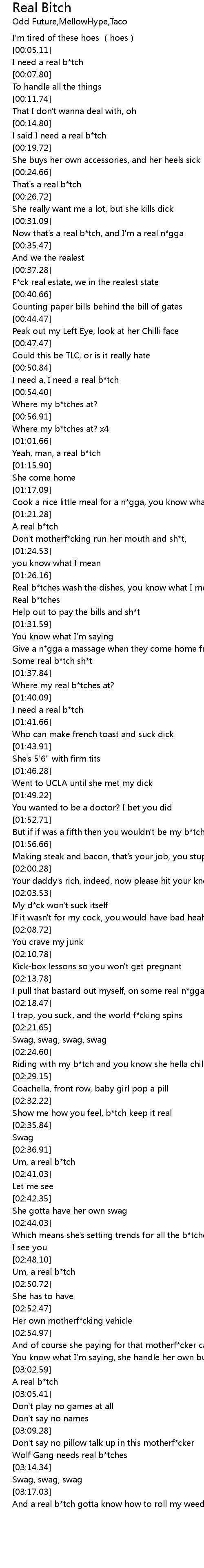 | [00:51.72] | I need a, I need a real b tch |
