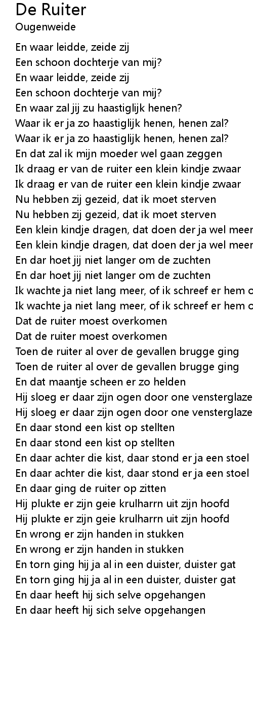Ik draag er van de ruiter een klein kindje zwaar |
