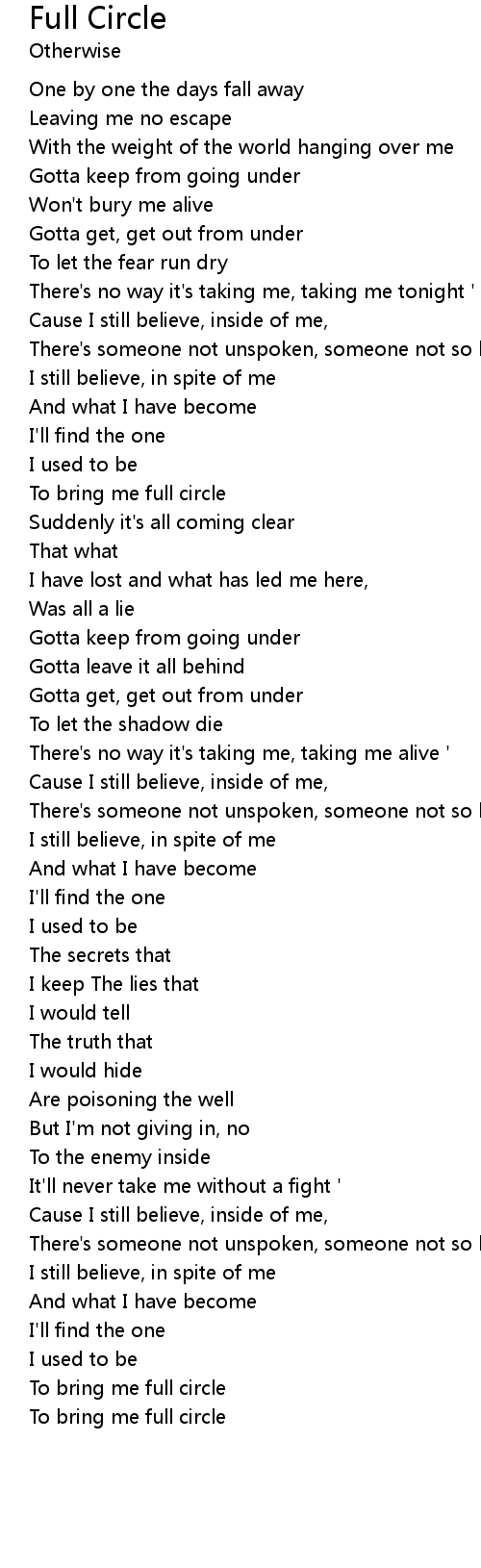 To bring me full circle |
