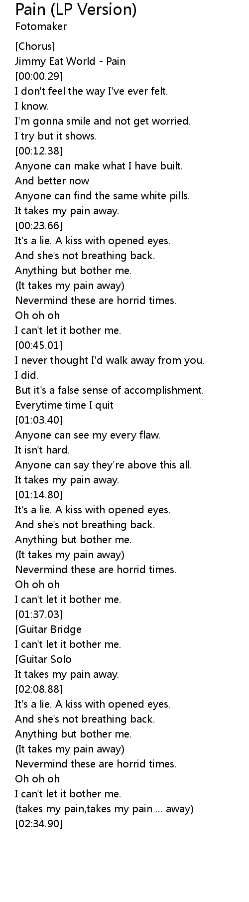 | [02:28.48] | (takes my pain,takes my pain ... away) |