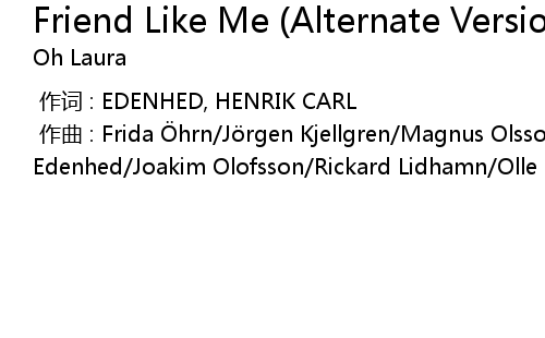 | [00:00.000] | zuo qu : Frida hrn J rgen Kjellgren Magnus Olsson Henrik Edenhed Joakim Olofsson Rickard Lidhamn Olle Olson |
