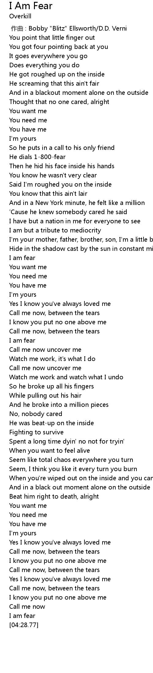 | [00:00.00] | 作曲 : Bobby "Blitz" Ellsworth/D.D. Verni |