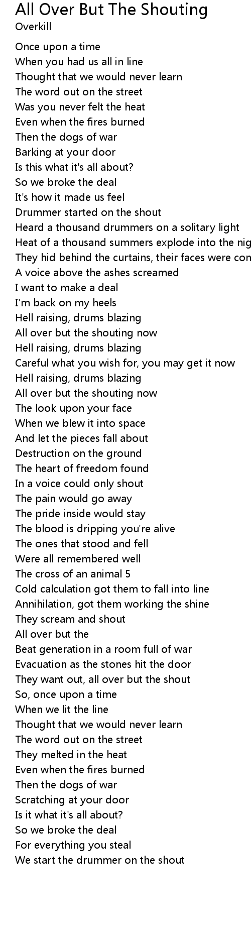 All over but the shouting now |