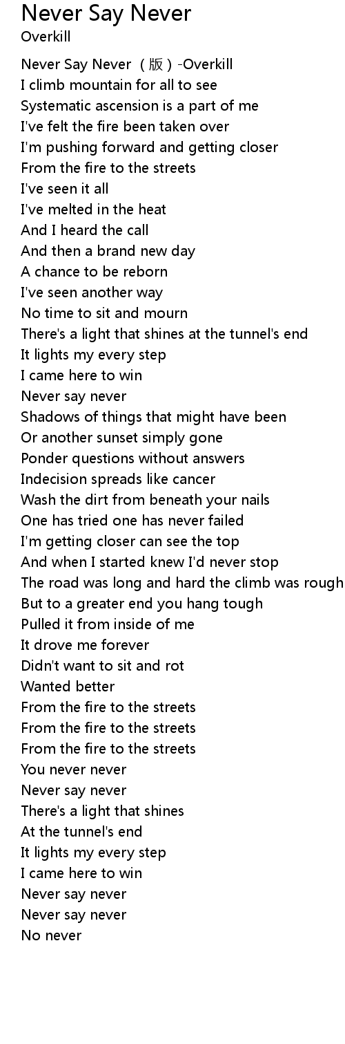 | [00:00.00] | Never Say Never bǎn Overkill |
