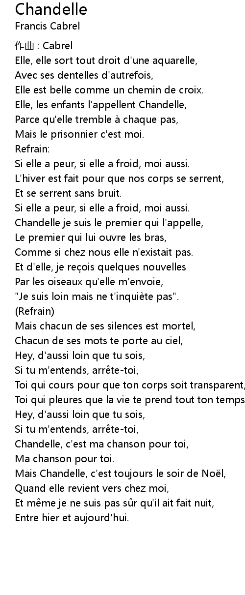 | Mais Chandelle, c' est toujours le soir de No l, | |