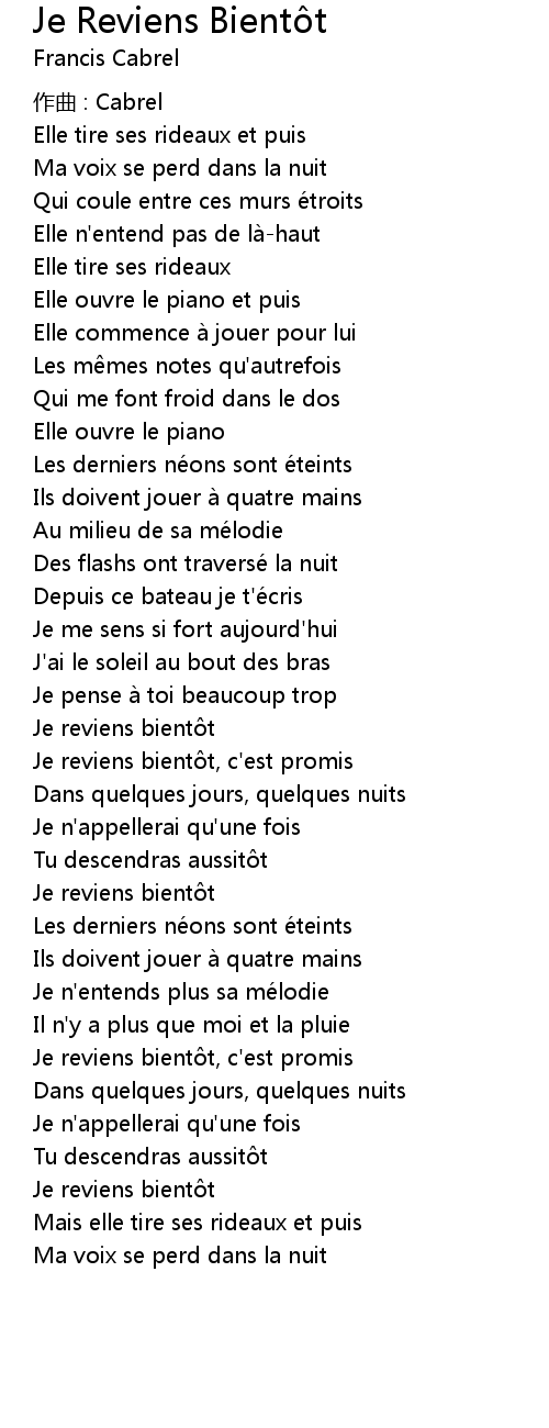 | Song | Je Reviens Bientôt |