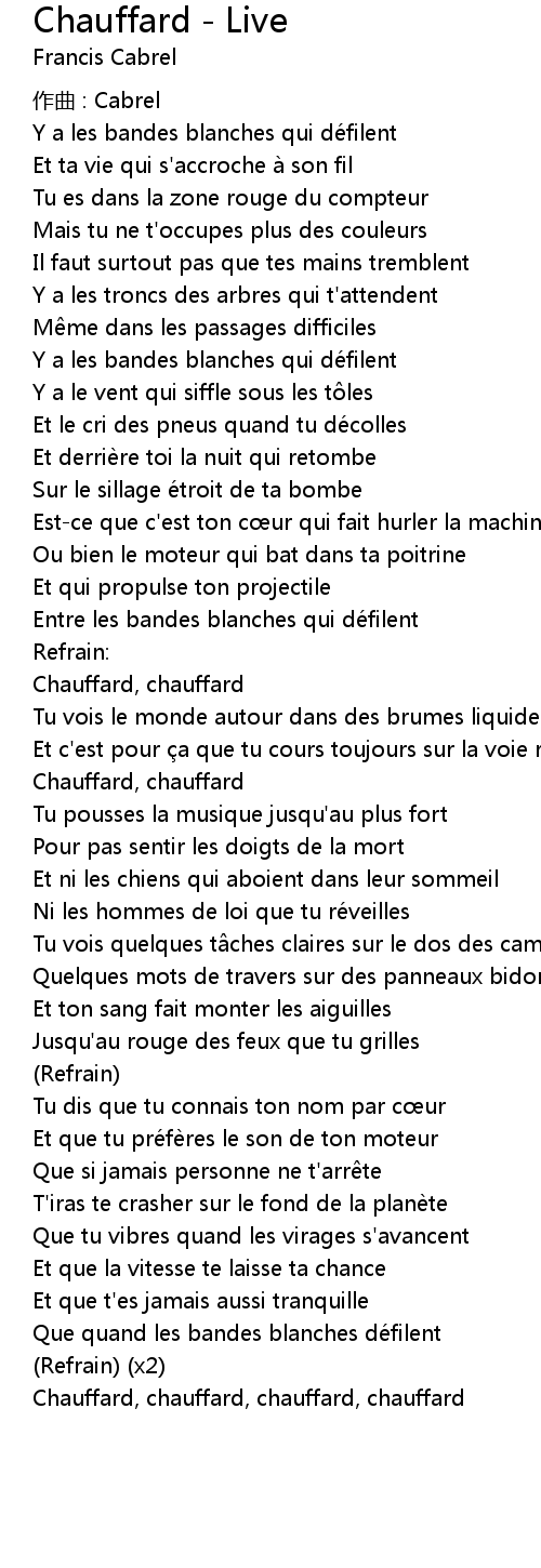 | Et c' est pour a que tu cours toujours sur la voie rapide | |