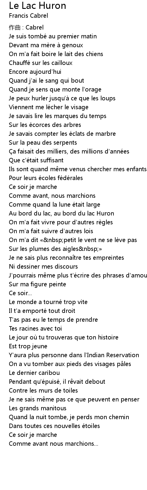 | Song | Le Lac Huron |