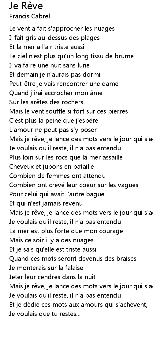 | Mais je rêve, je lance des mots vers le jour qui s'achève, | |