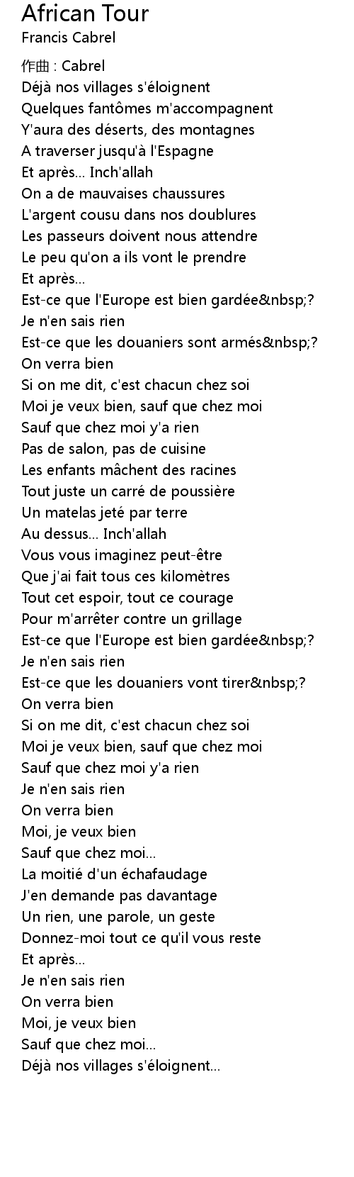 | 作曲 : Cabrel | |