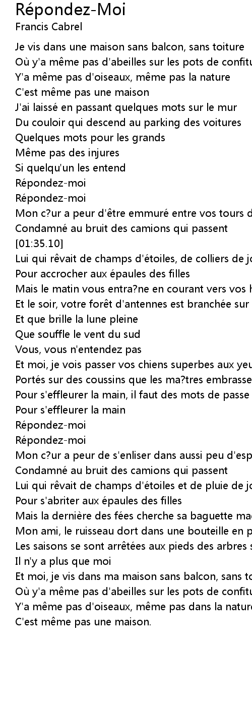 | [00:50.70] | J' ai laissé en passant quelques mots sur le mur |