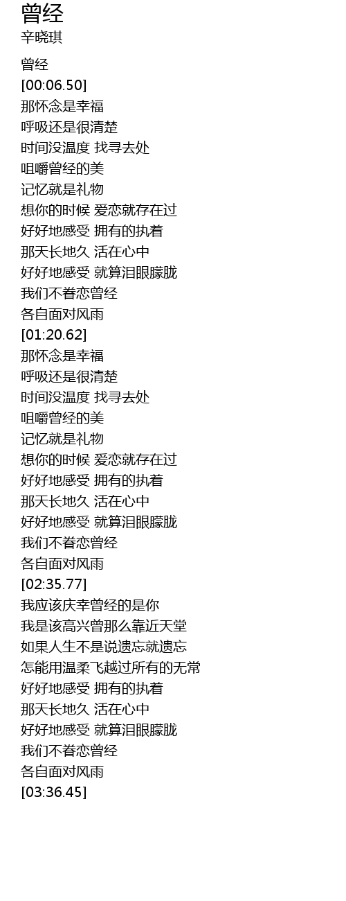 | [00:01.39] | 曾经 |