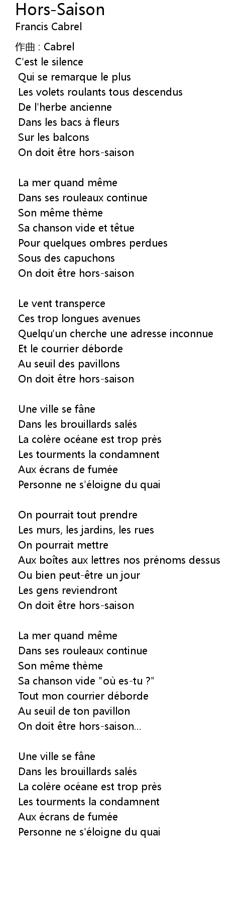 | Song | Hors-Saison |