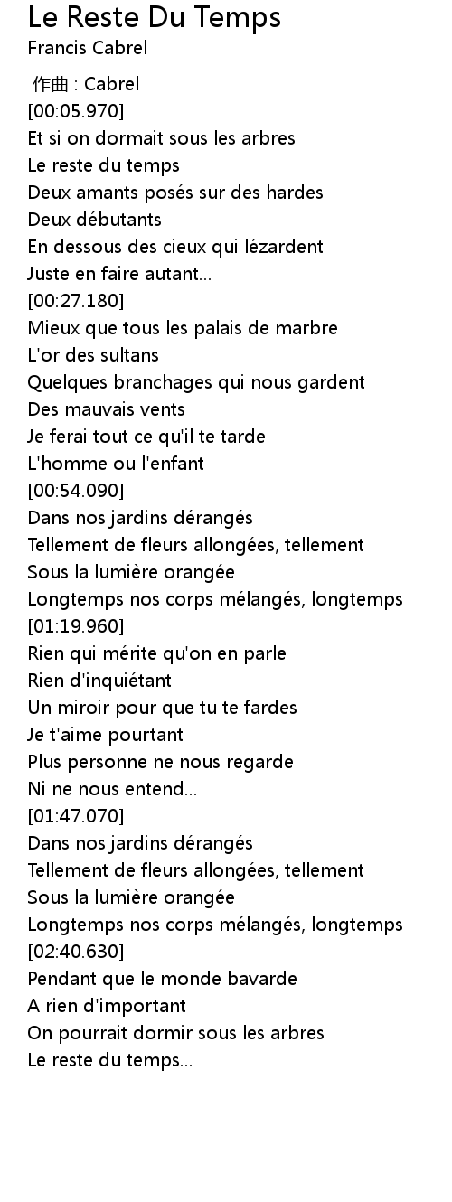 | [02:35.290] | Longtemps nos corps mé langé s, longtemps |