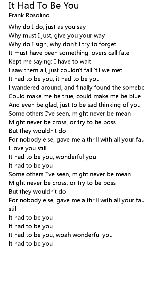 It had to be you, it had to be you |
