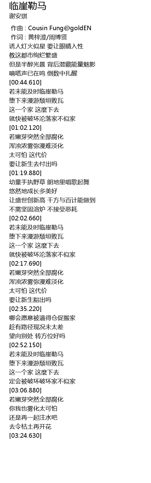 | [00:00.00] | 作曲 : Cousin Fung@goldEN |