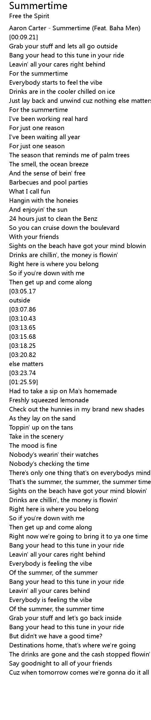 [00:00.00] Aaron Carter - Summertime (Feat. Baha Men)