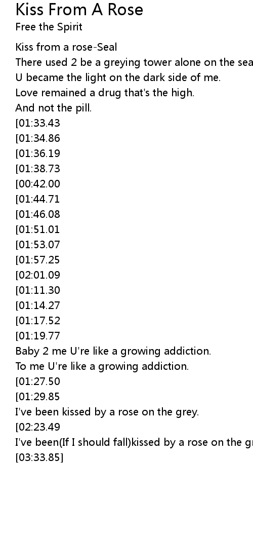 | [03:13.84][01:46.08][00:44.28] | I compare U 2 a kiss from a rose on the grey ! |