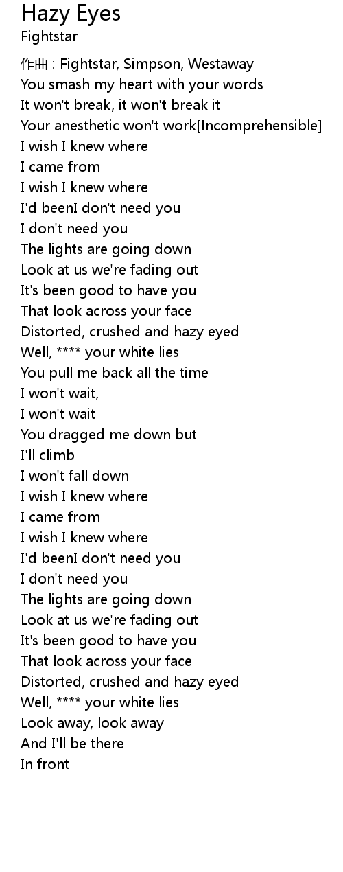 | Song | Hazy Eyes |