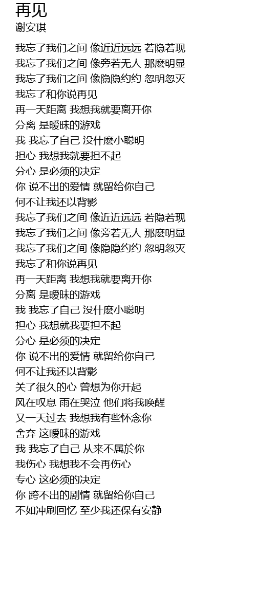| [00:35.698] | 我忘了和你说再见 |