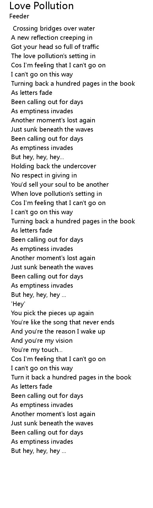 When love pollution's setting in |