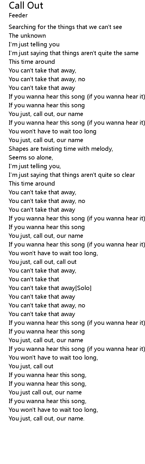 | You just, call out, call out | |