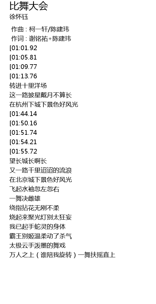 | [02:19.76] | 一舞决雌雄 |