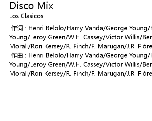 | [00:00.000] | 作词 : Henri Belolo/Harry Vanda/George Young/Harry Vanda & George Young/Leroy Green/W.H. Cassey/Victor Willis/Bernard Eduards/F. Finch/I. Morali/Ron Kersey/R. Finch/F. Marugan/J.R. Flórez/Nile Rodgers |