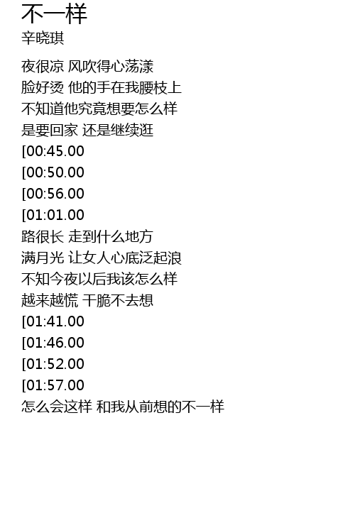 | [02:58.00][01:41.00] | hé wǒ cóng qián yǒu guò de nán rén bù yí yàng |