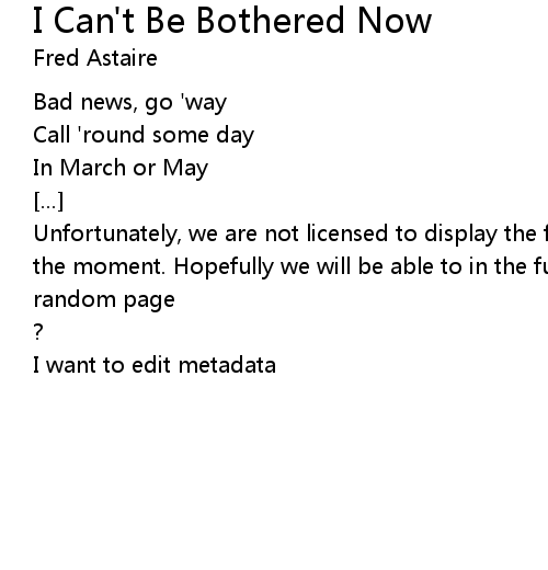 | Unfortunately, we are not licensed to display the full lyrics for this song at the moment. Hopefully we will be able to in the future. Until then, how about a | |