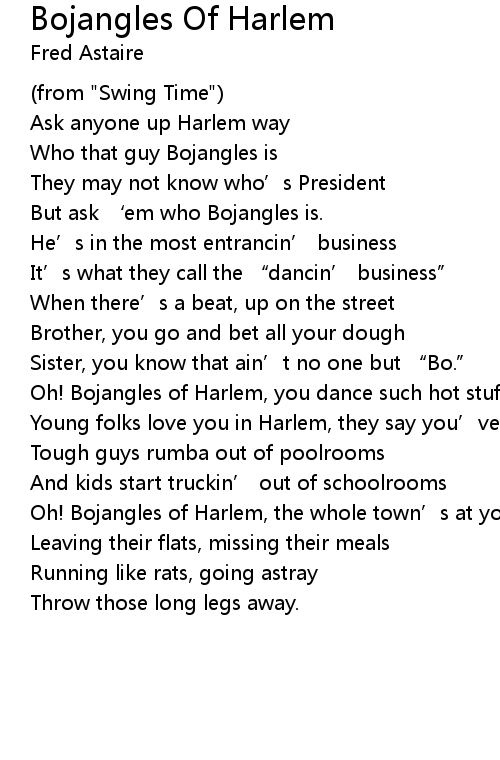 | Oh! Bojangles of Harlem, the whole town' s at your heels | |