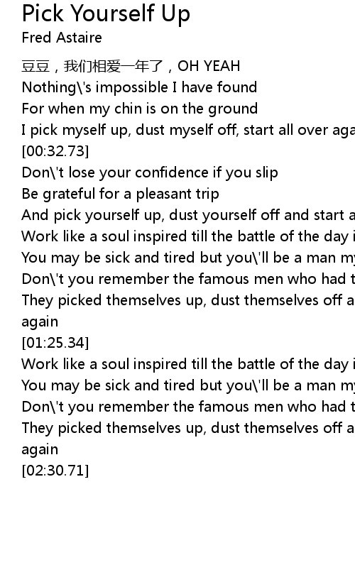 | [00:25.61] | I pick myself up, dust myself off, start all over again |