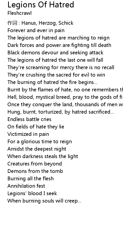 | Song | Legions Of Hatred |