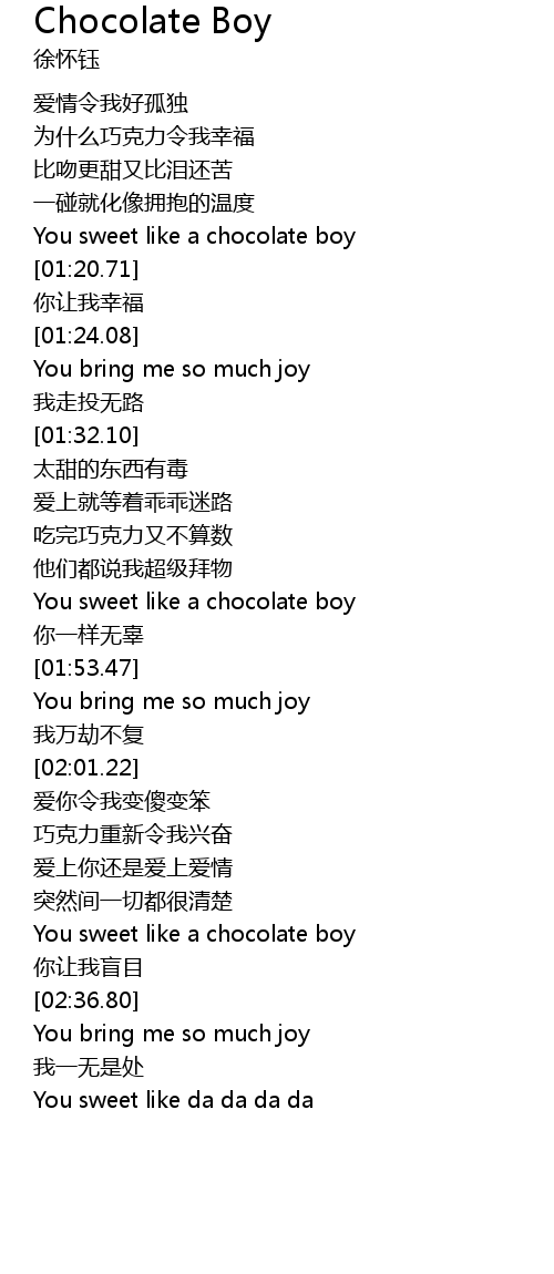 | [01:17.58] | You sweet like a chocolate boy |