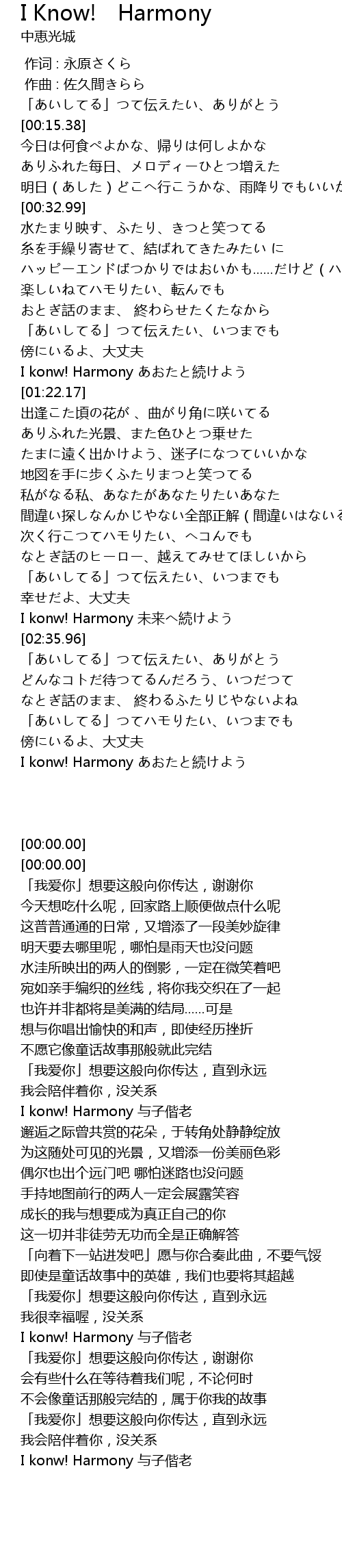 | [02:29.57] | I konw! Harmony 未来へ続けよう |